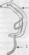 Рис.1. Шистосома мочеполовая (Schistosoma haematobium).1 - самец, 2 - самка.