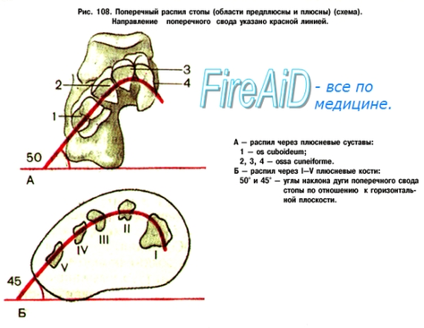 Поперечный свод стопы хорошо выражен в области головок плюсневых костей. В норме стопа опирается в переднем отделе только на головки крайних (I и V) плюсневых костей, головки II, III и IV плюсневых костей образуют выпуклый свод.