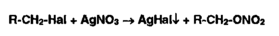 Реакции дегалогенирования можно выполнять без предварительной минерализации (если галогены связаны с углеродом непрочной ковалентной связью). Отщепление галогена при этом происходит под действием раствора нитрата серебра:
