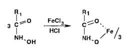 Гидроксамовые кислоты, взаимодействуя с ионами железа (III) или меди (II), образуют окрашенные соли: