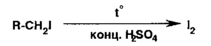 Йод обнаруживают либо нагреванием йодпроизводного в пробирке на пламени горелки, либо действуя концентрированной серной кислотой: