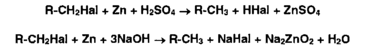 Галогенсодержащие соединения под действием цинковой пыли в кислой или щелочной среде образуют галогениды: