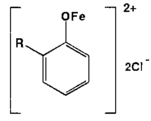Ион железа (III) — наиболее широко используемый в фармацевтическом анализе реактив. Взаимодействуя с фенолами, он образует ионы феноксидов железа, окрашенные в синий, фиолетовый или красный цвет, например: