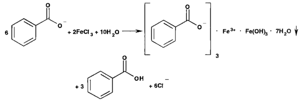 а с бензоат-ионом — бензоат железа (розовато-желтый осадок):