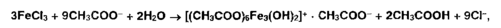 Ионы железа (III) образуют окрашенные в красный цвет соли с ацетат-ионом: