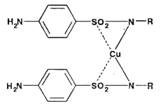 Различные по растворимости и окраске внутрикомплексные соединения меди (II) образуются с сульфаниламидами. Ион меди при этом замещает подвижный атом водорода: