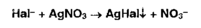 Аргеитометрия основана на реакциях осаждения галогенидов (Hal-) титрованным раствором нитрата серебра: