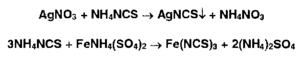 Ъюцианатометрия основана на реакции осаждения иона серебра тиоцианатом аммония (индикатор — железоаммоние- вые квасцы):
