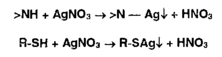 Косвенная (заместительная) нейтрализация основана на реакции осаждения ионами серебра органических оснований, содержащих в молекуле вторичную аминогруппу или меркаптогруппу: