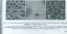 Возможность использован и я фильтров для медико-биологических задач определяется не только стерилизующей эффективностью, производительностью, механической прочностью, возможностью применения различных способов стерилизации, но и отсутствием выделения токсичных компонентов в стерилизуемую жидкость. Предполагаемое токсическое действие материала фильтров «Мифил» оценивали в опытах по культивированию клеток и тканей. Использование в качестве тест - объектов культуральных систем явилось следствием хорошо известного факта гиперчувствительности клеток in vitro к любым повреждающим воздействиям в сравнении с клетками in situ. Проведено исследование функционального состояния клеток в развивающихся культурах, выращиваемых в различных питательных средах, фильтрованных через оцениваемый фильтр, или в присутствии материала фильтра в культуральной системе. В последнем случае отмытые и автоклавированные фильтры (100 мг на 1 мл среды) помещали в сосуд со средой и развивающимися культурами. Ежедневно в течение недели опытные культуры сравнивали с контрольными на предмет выявления в них цитотоксических изменений. Все культуры исследовали прижизненно микроскопически, часть из них фиксировали и окрашивали для гистологического и гистохимического анализа.