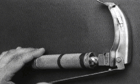 Интубация трахеи через рот. При хорошей технике местной анестезии интубация трахеи может быть осуществлена с помощью стандартной методики путем прямой ларингоскопии. Однако, часто ларингоскопия ведет к слишком выраженной ноцицептивной стимуляции, и больные ее плохо переносят. Если при ларингоскопии хорошо визуализируются голосовая щель и другие структуры гортани, проводят индукцию в анестезию, и интубация трахеи осуществляется обычным путем. Если голосовая щель не визуализируется, требуется применение альтернативных методик. Интубация в сознании с помощью введения бронхоскопа через рот технически сложнее, чем при назальной методике: язык и надгортанник затрудняют обзор, и, кроме того, пациент может перекусить бронхоскоп.