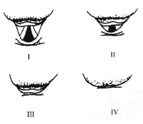 Класс II: голосовые связки видны лишь частично;