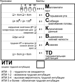 | ИТИ 0 | Трудности при интубации и вентиляции не ожидаются. Проводится рутинная интубация. |