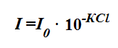 Величина коэффициента погашения К зависит от способа выражения концентрации вещества в растворе и толщины поглощающего слоя. Если концентрация выражена в молях на литр, а толщина слоя - в сантиметрах, то он называется молярным коэффициентом погашения, обозначается символом ε и равен оптической плотности раствора с концентрацией 1 моль/л, помещенного в кювету с толщиной слоя 1 см.
