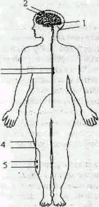 1,2 - воздействие на ЦНС, 3 - СМ, 4 - периферические нервы, 5 - мышцы