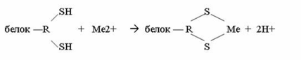 Связывание металла с тиоловыми группами белков приводит к разрушению структуры белка, что вызывает прекращение его функций. Результат - нарушение работы всех ферментных систем организма.