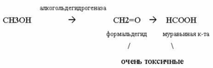 При отравлении метанолом в организме образуются очень токсичные соединения - формальдегид и муравьиная кислота. Они более токсичны, чем сам метанол. Это пример летального синтеза.
