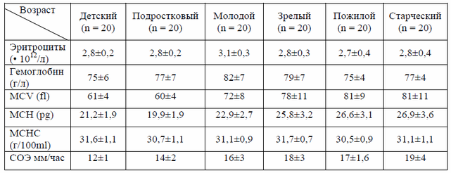 Возрастзависимая характеристика красной крови у больных с анемическим синдромом (2009 г.)