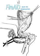 Отделение семенного канатика от задней стенки пахового канала. Приподнимая канатик за держалку, его на всем протяжении отделяют от подлежащих тканей вместе с m. cremaster