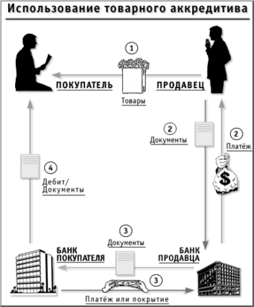 Переводы денег от покупателя банку, от банка покупателя в банк продавца, и от банка продавца продавцу могут осуществляться одновременно с обменом документами, или в соответствии с заранее согласованной процедурой.