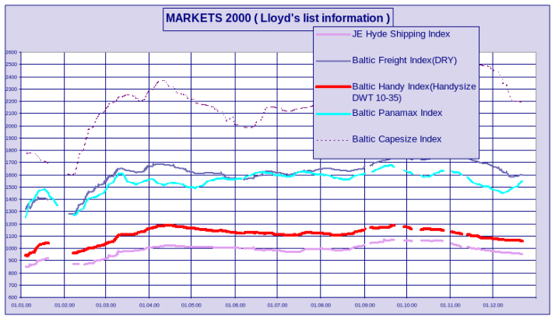 Рис. 1 График фрахтовых индексов за 2000 год.