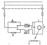 Одна из обмоток двигателя 1 или 2 при помощи контактов реле управляющего устройства включается в сеть переменного тока, а др. обмотка при этом включается через конденсатор С. Включение конденсатора создает сдвиг фаз между токами, протекающими через обмотки двигателя. На выходном валу исполнительного устройства устанавливается два кулачка, которые управляют кольцевыми включателями КВ-1 и КВ-2, с их помощью можно ограничить ход входного вала исполнительного механизма в пределах 120°. Обратная связь по положению осуществляется реостатом Кобр.с, движение которого связано с выходным валом механизма. Напряжение, снимаемое с реостата, зависит от положения регулируемого органа. Направление вращения двигателя зависит от того, верхний или нижний контакт Р замкнут, а последний зависит от знака сигнала поступающего на реле. Направление вращения двигателя исполнительного механизма зависит от того в какую сторону отклонилась регулируемая величина от заданного значения; при этом двигатель перемещает регулируемый орган в сторону уменьшения отклонения. Исполнительный механизм можно использовать как при автоматическом управлении регулирующим органом, так и при ручном. В этом случае вместо командных контактов регулятора включаются контакты ключей или кнопок управления, а реостат обратной связи можно использовать для присоединения указателя положения регулирующего органа.