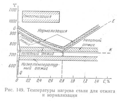 Этот отжиг характеризуется нагревом до температуры значительно выше температур интервала превращений (на 180 - 300° С) с последующим медленным охлаждением.