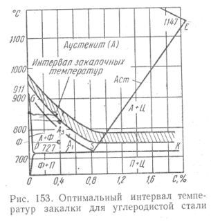 АКАЛКА СТАЛИЗакалкой называют нагрев стали выше критической точки с последующим быстрым охлаждением. Обычно нагрев проводят на 30-50 град выше линии GSK на диаграмме железо - цементит.