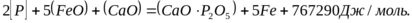 Для успешного протекания той реакции необходимы высокие основность шлака и концентрация окислов железа в нем, а также пониженная температура. Эти условия создаются при совместном введении в печь извести и руды.