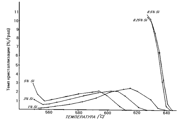 Рис.18 Изменение темпа кристаллизации сплавов системы Al – Si