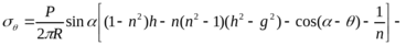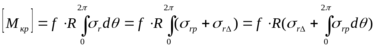 Вычисления компонентов напряжений обычно весьма громоздки в общем виде и в расчетах. Используя метод Н.И. Мусхелишвили применительно к поставленной задаче и выполняя решение аналогично приведенного в работе [10] определяются напряжения на посадочной поверхности бандажа в виде формул, удобных для численной реализации [11]. Окончательные выражения имеют вид: