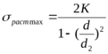 Напряжение сжатия в оси максимально на внутренней поверхности: