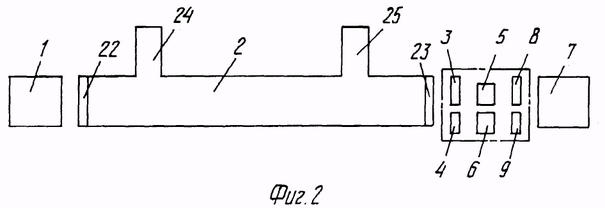 Газовая кювета 2 с принадлежащими ей оптическими окнами 22 и 23 и штуцерами 24 и 25 обеспечивает прохождение излучения через газовую кювету и фокусирование его на фотоприемниках;