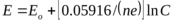 где E0 — нормальный электродный потенциал; С — концентрация определяемого компонента (ионов), зависящая от числа моль-ионов в 1 л.