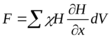 Силу, действующую на объем газа V в неоднородном магнитном поле, характеризующемся напряженностью H и градиентом напряженности в направлении оси абсцисс