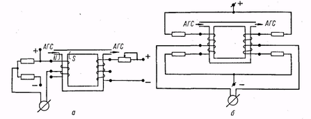 На рис. 13, а изображена схема включения О-образной камеры, в которой один термоанемометр расположен под магнитными наконечниками и используется в качестве измерителя, а второй термоанемометр — в качестве нагревателя для обеспечения компенсации потоков термомагнитной и результирующей тепловой конвекции в одной из точек диапазона измерения.