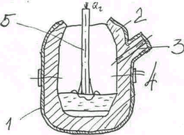 поясу 4 с цапфами, расположенными в подшипниковых опорах. 02 обычно подается сверху через водоохлаждающую фурму 5. Подача сверху обусловлена образованием высокотемпературной реакционной зоны в месте вдувания 02 в Me. Фурма способна перемещаться вверх-вниз. Исходным материалом конвертерной плавки является жидкий чугун, лом-метал. часть шихты и шлакообразующие окислители. Перед загрузкой конвертер наклоняют, загружают Me лом, затем заливают чугун; конвертер приводят в вертикальное положение, опускают кислородную фурму и начинают продувку 02. Одновременно с началом продувки по мере ее проведения по специальному желобу загружают известь, железную руду и флюсы. Проникая в Me, 02 взаимодействует с Fe.