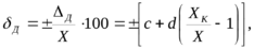 где с и d—постоянные числа, причем с—численно равно относительной погрешности на верхнем пределе измерения, a d—численно равно погрешности на нижнем пределе измерения, выраженной в процентах от верхнего предела;