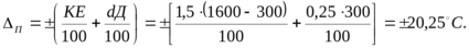 Пример 3. Определить погрешность потенциометра типа КСП3-П класса точности 1,5 для измерения температуры, имеющего шкалу +300¸1600 °С. По (16) находим, что абсолютная основная погрешность на всех точках шкалы не должна превышать значения