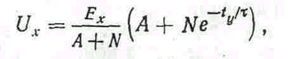 разряжается по экспоненциальному закону на сопротивление R. с постоянной времени