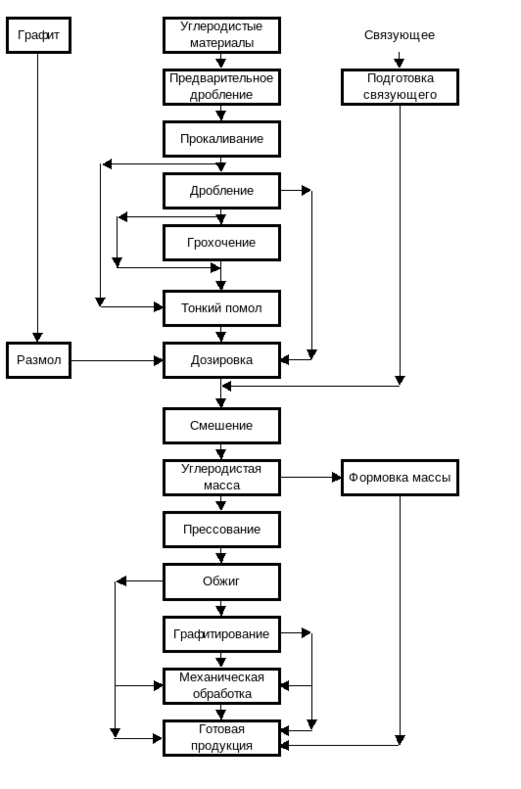 Для производства углеродистых изделий применяют сырьё двух видов: