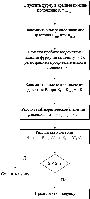 Для избежания ошибки анализа из-за колебания заметалливания во время наложения пробного воздействия, неточностей контрольно-измерительной и пускорегулирующей аппаратуры, случайных колебаний давления Р и прочее устанавливается некоторый порог Рпор отклонение Р относительно Ррасч. Причиной изменения давления Р, отклонившимся от Ррасч на величину Р, большую, чем Рпор, считается наличие свищей. Если же Р при наложении пробного воздействия отклоняется на величину Р, не превышающую Рпор, то считается, что свищей нет, и отклонение Р носит псевдослучайный характер. Иначе говоря, в последнем случае причиной падения давления до наложения пробного воздействия считается снижение заметалливания сопла.