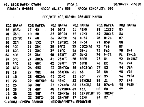 Рисунок 22 – Видеограмма Ф3. «Ввод марки стали»
