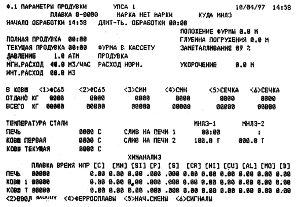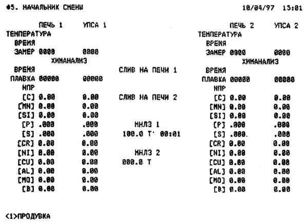 | 12:06:41 | Номер плавки с последнего химанализа с печи №1 | 12874 |