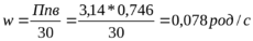 Частота вращения ведущей шестерни n= 0,746 об/мин