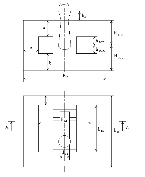 По ГОСТ 2133-75 высота нижней опоки Нн.о. = 250мм 9, с.6, табл.4.