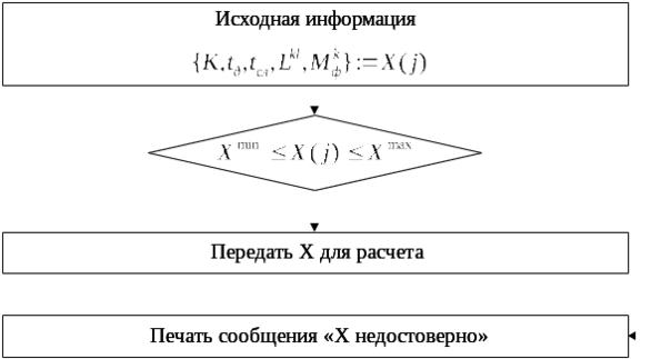В блоке 3 контроль входной информации осуществляется в некотором вероятном для каждого параметра диапазоне, определенном из опытных данных. Если параметр выходит за пределы диапазона, оператору системы выда-