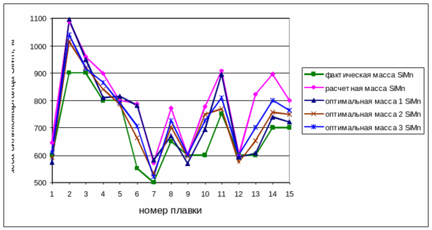 Рисунок 8 – Масса силикомарганца в различных вариантах оптимизации