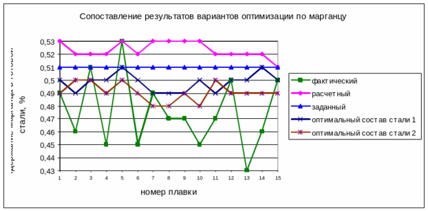 Рисунок 6 – Сопоставление результатов вариантов оптимизации по марганцу