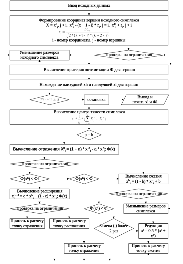 Рисунок 19 – Блок-схема поискового симплекс-метода